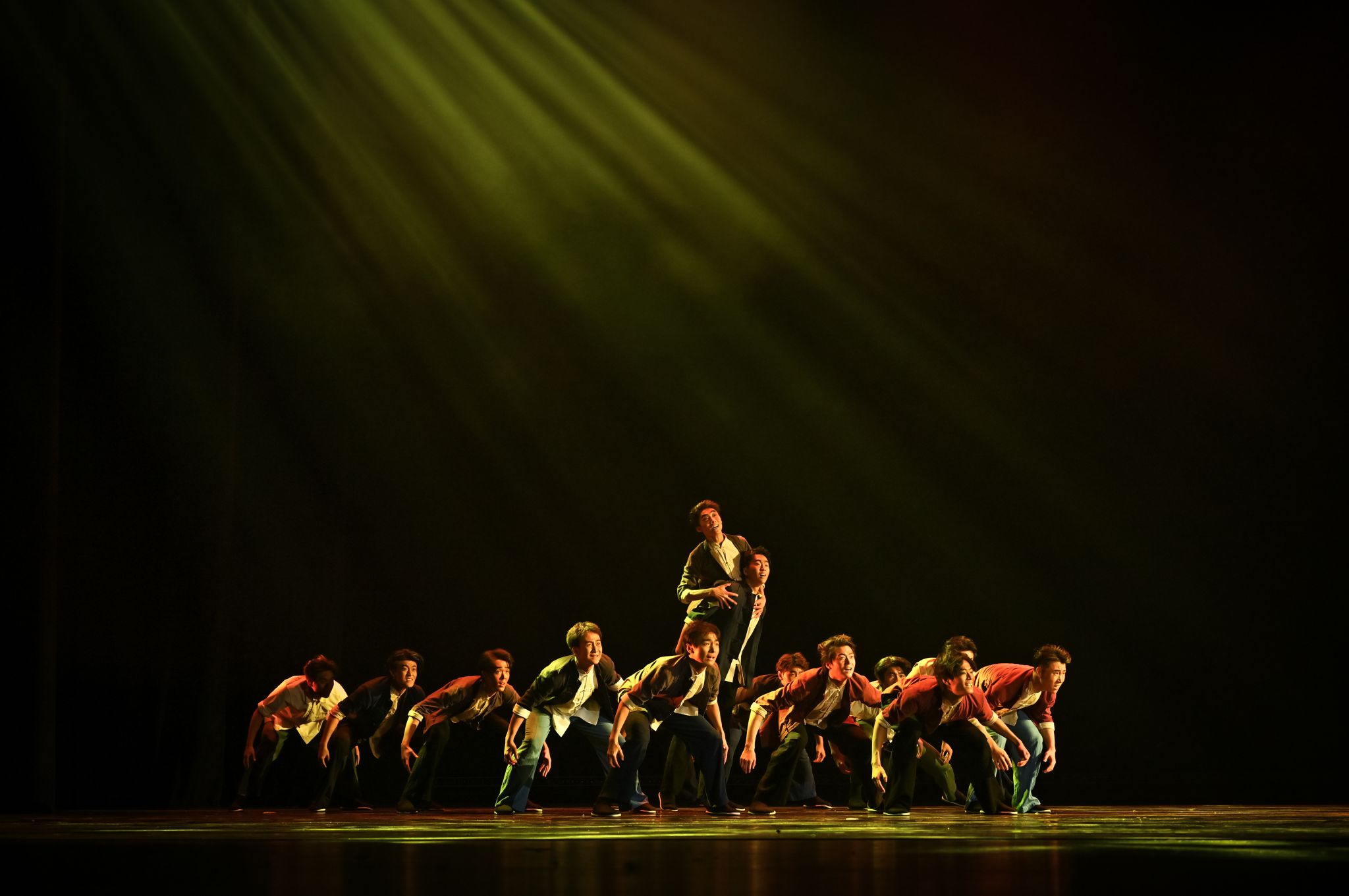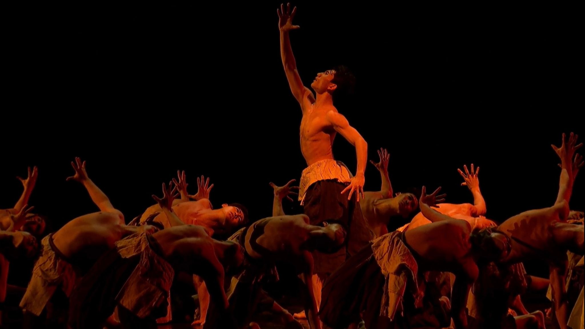 作品以中国传统建筑结构为创作题材,塑造演绎出故宫太和殿屋脊上蹲立的十只镇脊瑞兽的舞蹈形象。