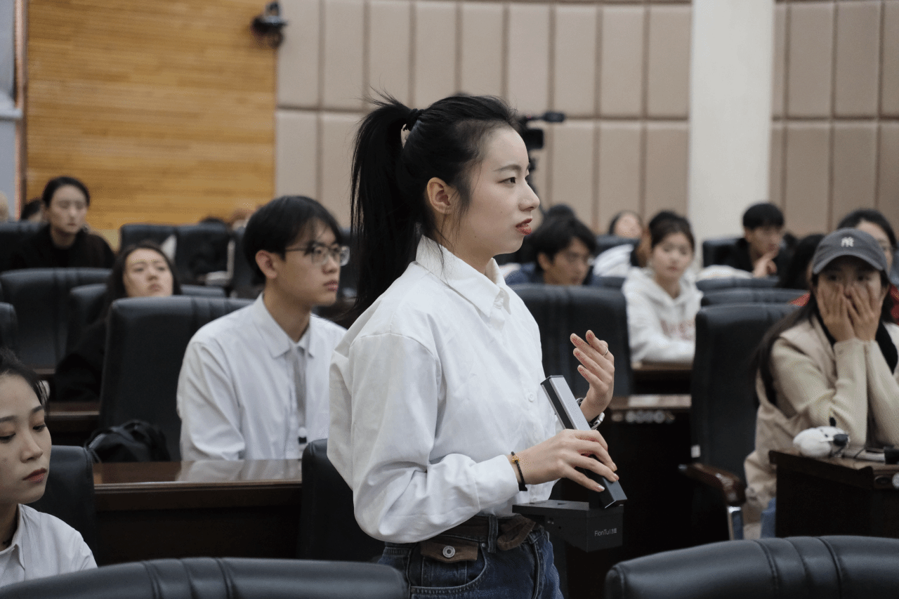 当天下午观影结束后,学生们从舞蹈影像创作实践、数字交互舞蹈发展、舞蹈编创、舞蹈纪录片等多个角度积极向刘春副所长进行提问,期望获得刘春副所长宝贵的见解和指导。刘春副所长对学生们的问题进行了细致耐心的解答,不仅加深了学生们对相关领域的理解,也为他们的学习和创作之路提供了重要的启示。