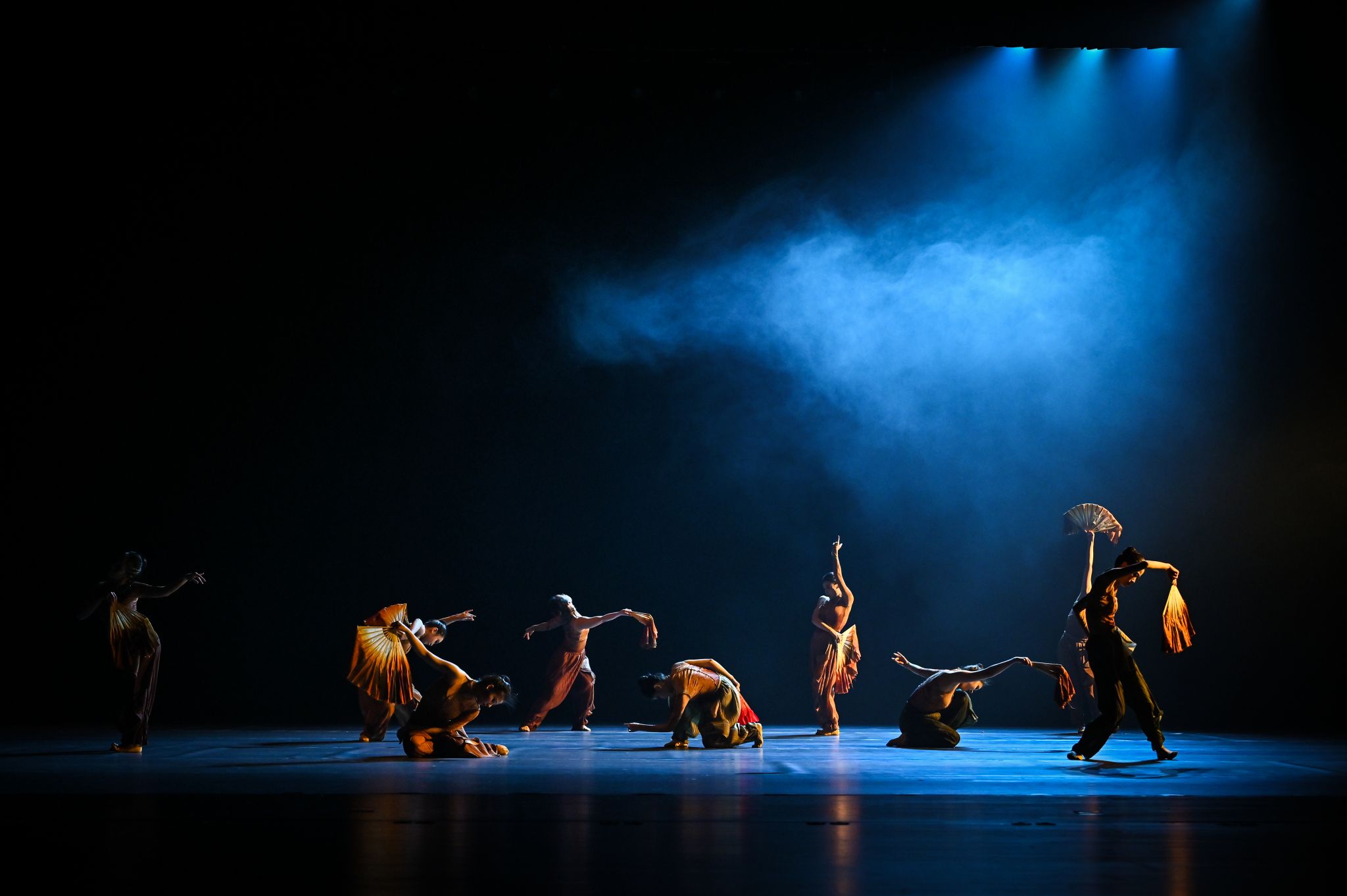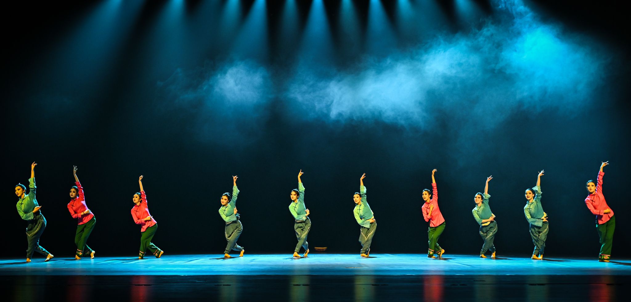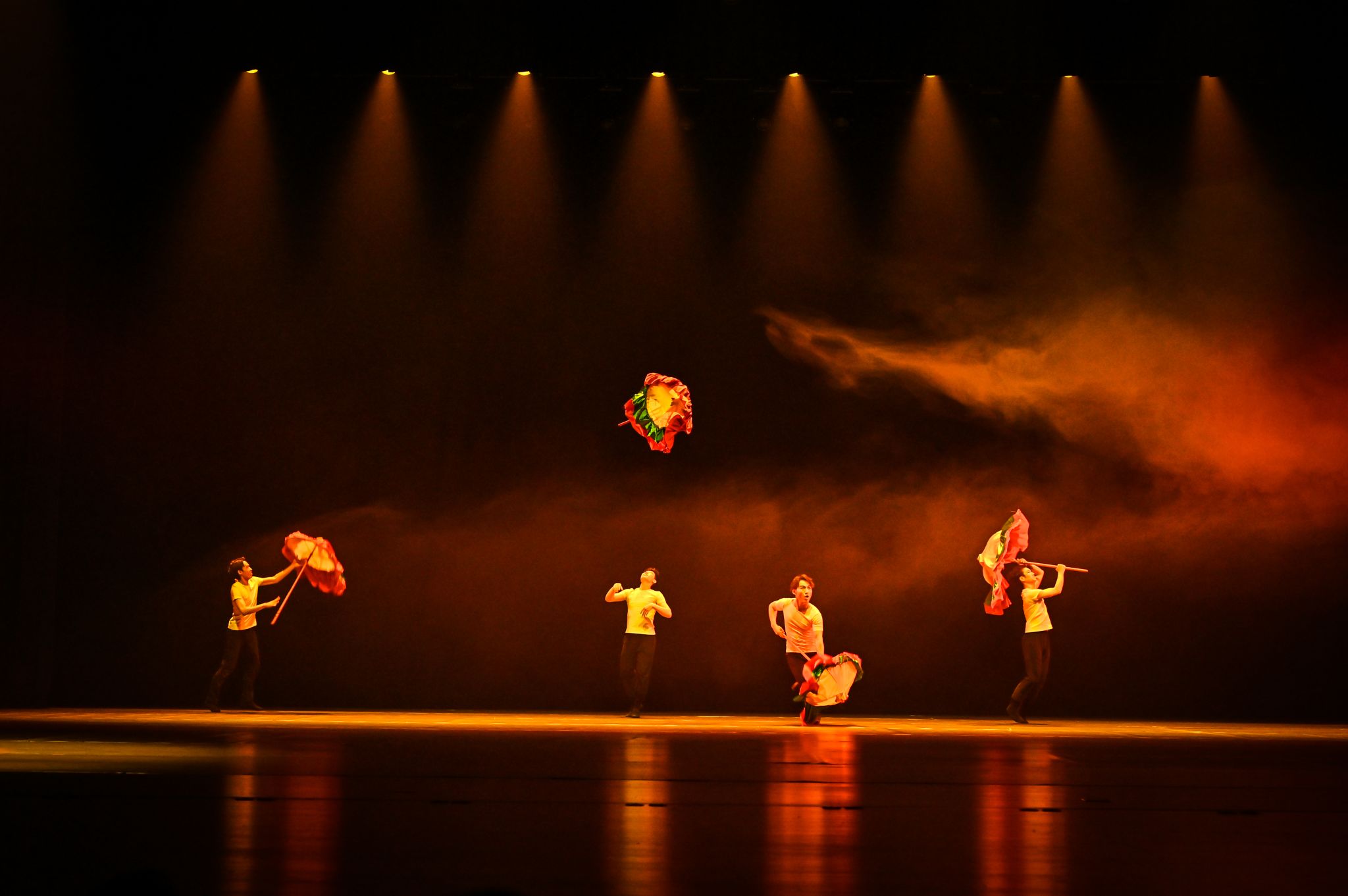 下半场“筝缘·情”:8部原创作品涵盖独舞、三人舞、群舞等多元形式,立足历史与现实,将古典、现当代及民族民间元素交织,以灵动舞姿传递时代温度,彰显学生的创新思维与舞台表现力。