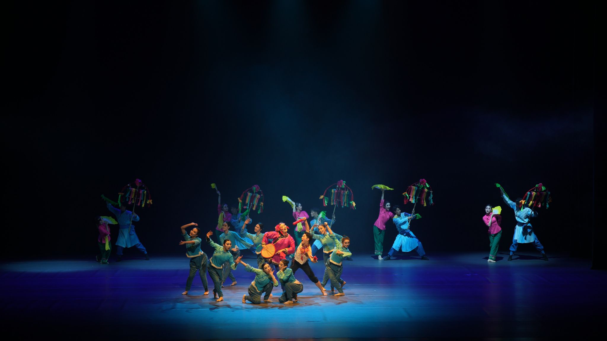 下篇“原创叙事·乡土抒怀”:以山东民间舞为创作根基,演绎多部原创作品。如《朝》、《鼓子系翠花》、《乡野趣画》等,展现山东民间舞的乡土烟火气。