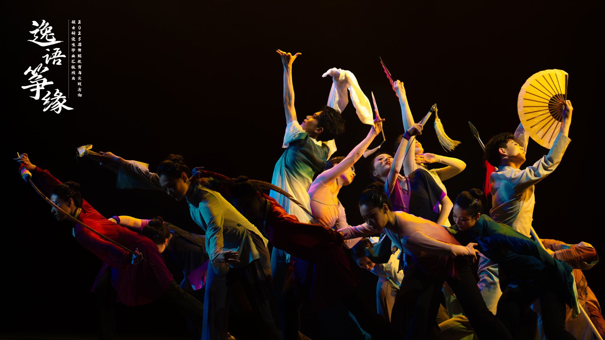 4月23日晚,《逸语·筝缘》——舞蹈科学训练与实践方向毕业汇演率先启幕。上半场“逸语·塑”:以中国古典舞身韵为核心,通过剑、扇、袖、翎等中华文化符号道具,融合“心、意、气、力、形、神”六要素,诠释“技法、身法、心法”合一的美学境界,展现古典舞的典雅气韵。