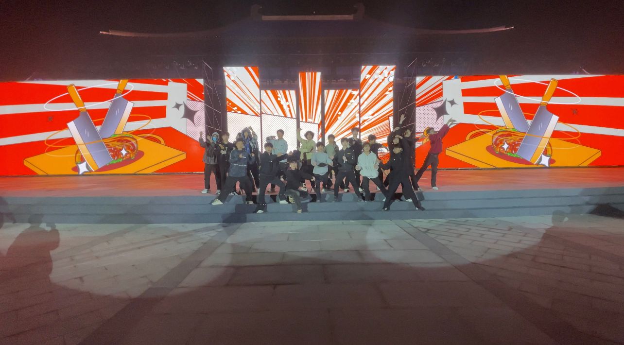 4月18日,怀揣着对舞台的向往和对传播齐鲁文化的使命,我院学子奔赴德州市乐陵市,迅速投身到紧张的排演工作中。在各部门的紧密协作与积极配合下,历经七天的辛勤付出,学子们于4月24日晚在德州圆满完成了演出任务。我院师生参演了开幕式多个节目的舞蹈演出与编排,涵盖了活力四射的开场舞《一路欢歌》、诙谐有趣的《快到我的碗里来》、时尚动感的《city 不 city》以及大气磅礴的结尾舞蹈。舞院学子们以灵动的舞姿,淋漓尽致地展现了好客山东的热情,为大会的盛大开幕增添了绚丽色彩。