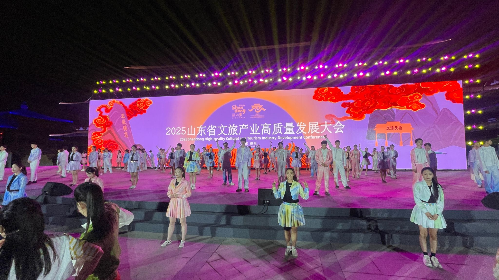 4月24日晚,2025山东省文旅产业高质量发展大会在德州乐陵开幕。山东艺术学院舞蹈学院100名学子以灵动的舞姿、饱满的热情闪亮登场,展现了山艺学子的青春魅力与舞动风采。