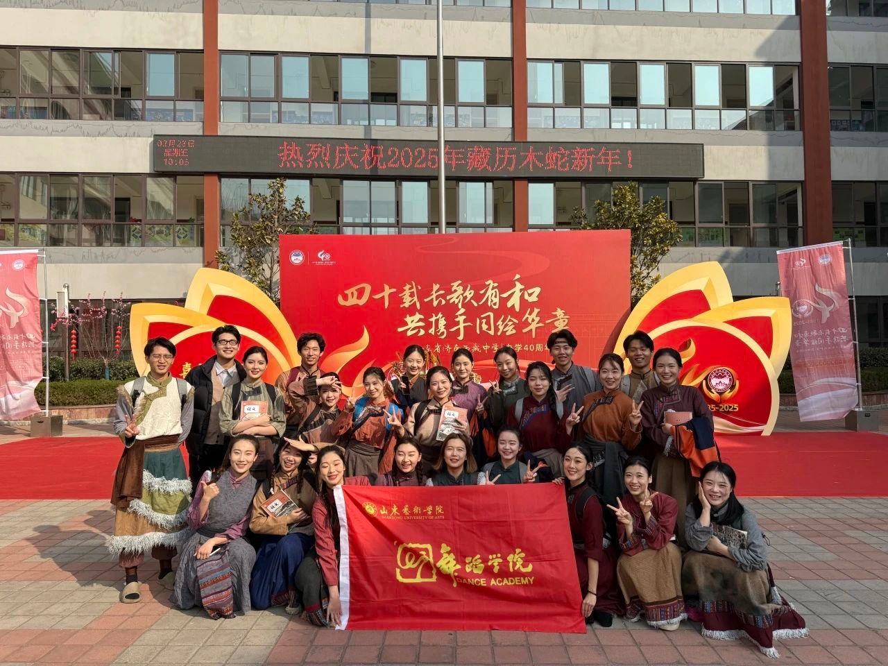 2月28日,舞蹈学院学生走进济南西藏中学,参加“四十载长歌有和 共携手同绘华章”山东省济南西藏中学办班40周年暨藏历新年庆祝活动。学院党总支副书记赵正、教师滕永山以及“走进舞蹈”青年志愿者服务团的志愿者们参加,与藏族师生欢聚一堂,共同庆祝美好时刻。