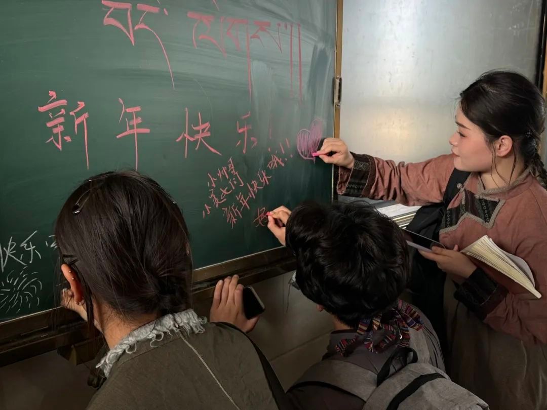 活动中两校同学们手拉手,跳起欢快的锅庄舞,品尝藏族特色美食,围坐交流文化习俗。同学们感受到了藏族文化的独特魅力,纷纷在教室黑板上留下对藏族孩子们的真挚祝福。两校学子在欢声笑语中增进了了解,加深了友谊,共同谱写了一曲民族团结的赞歌。
