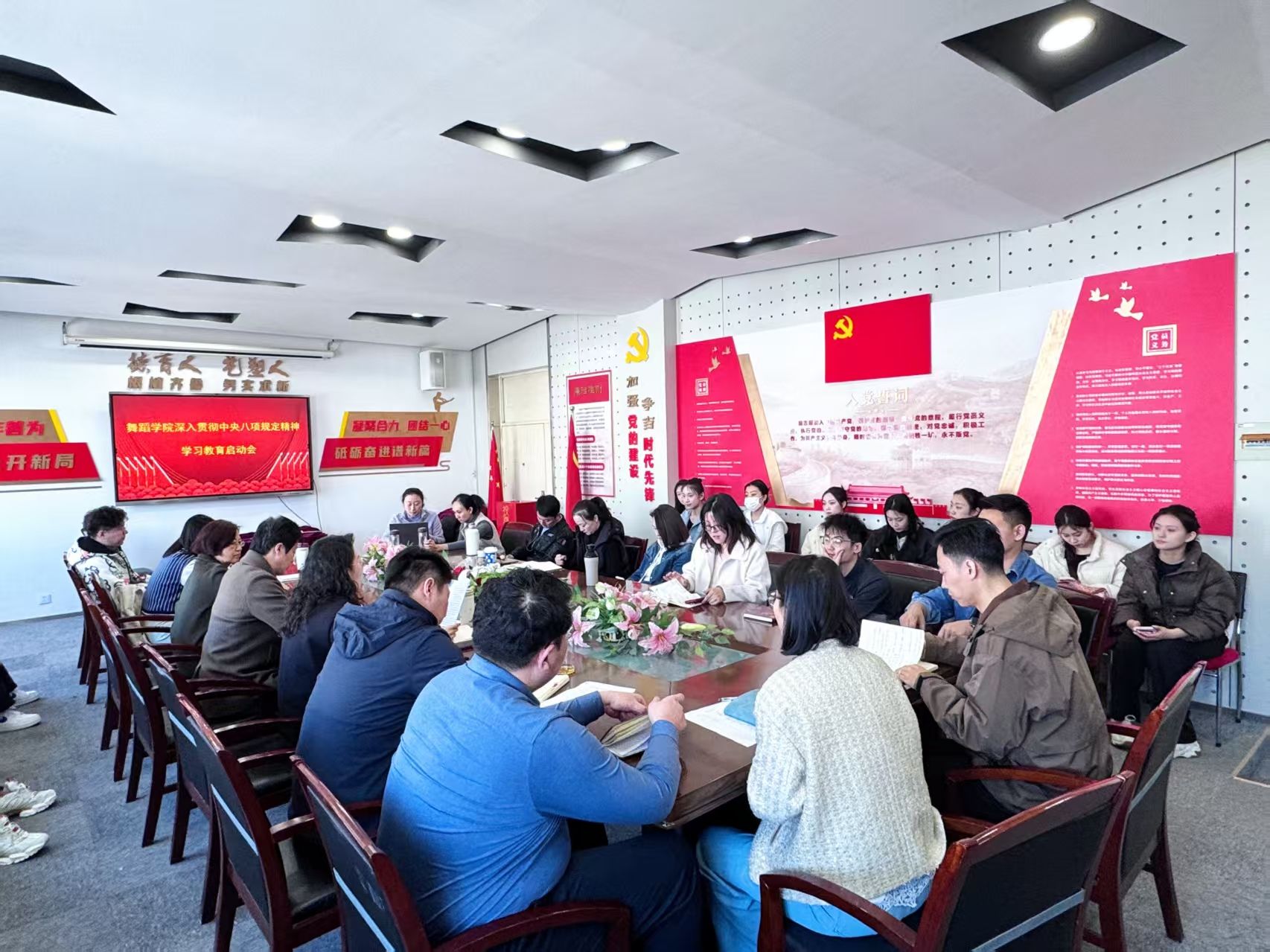 3月21日,舞蹈学院在三楼会议室召开深入贯彻中央八项规定精神学习教育启动会,启动部署学习教育工作,学院党政班子成员和全体党员参加。会议由党总支书记主持。