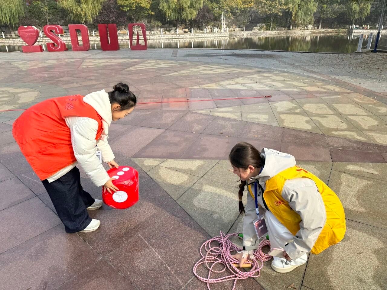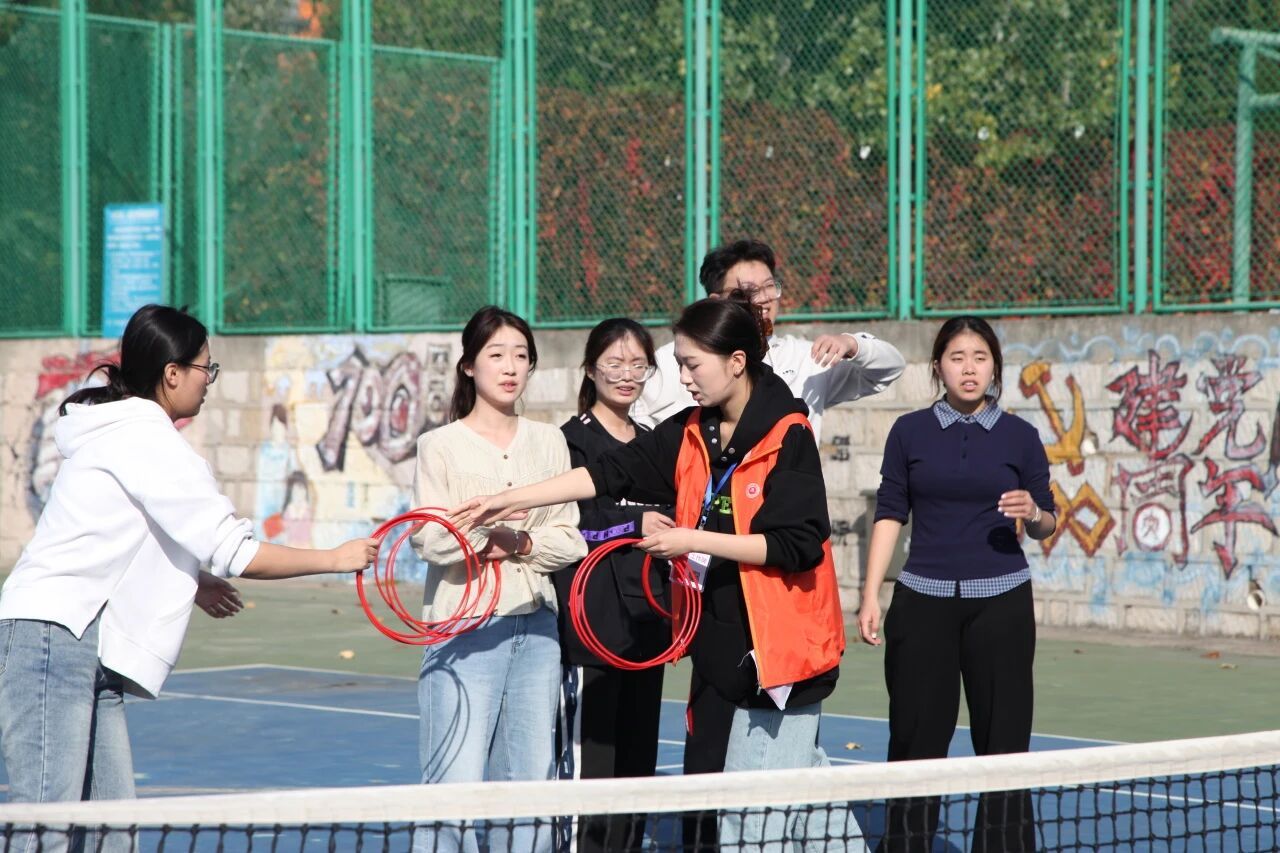 比赛现场热闹非凡,14个趣味项目轮番上演:从考验默契的“巨人脚步”“一圈到底”,到展现灵活的“袋鼠跳”“扭歪歪”“不倒森林”,再到灵活运用语言的“正话反说”等,每个项目都让参赛者和观众乐在其中。各学院队员们配合默契、奋勇争先,充分展现了各学院的凝聚力和青春活力。