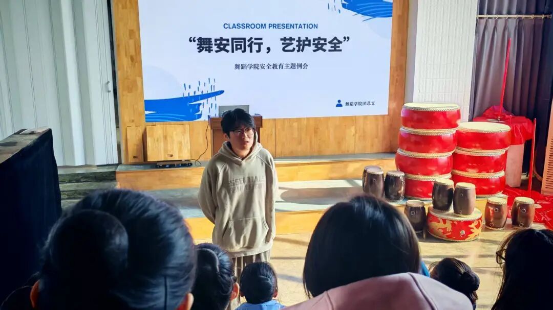 11月10日,舞蹈学院开展“舞安同行,艺护安全”安全教育专题活动。学院党总支副书记赵正、团总支书记鲁芳、辅导员程增欢及全体学生会干部参会。