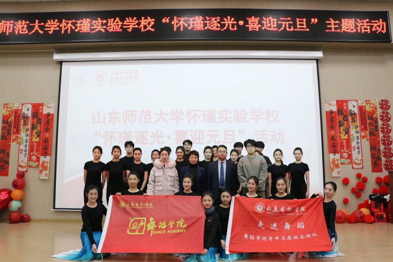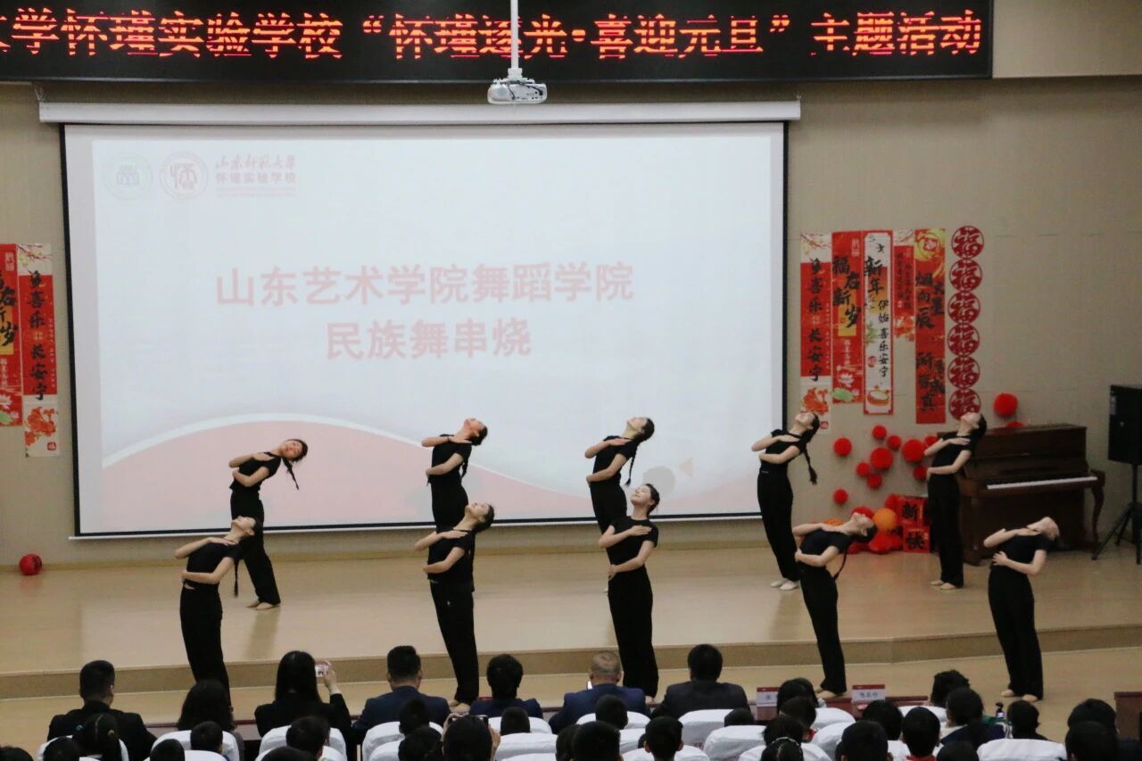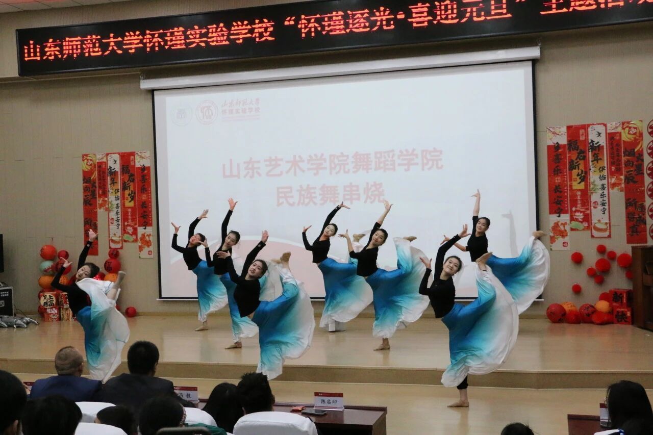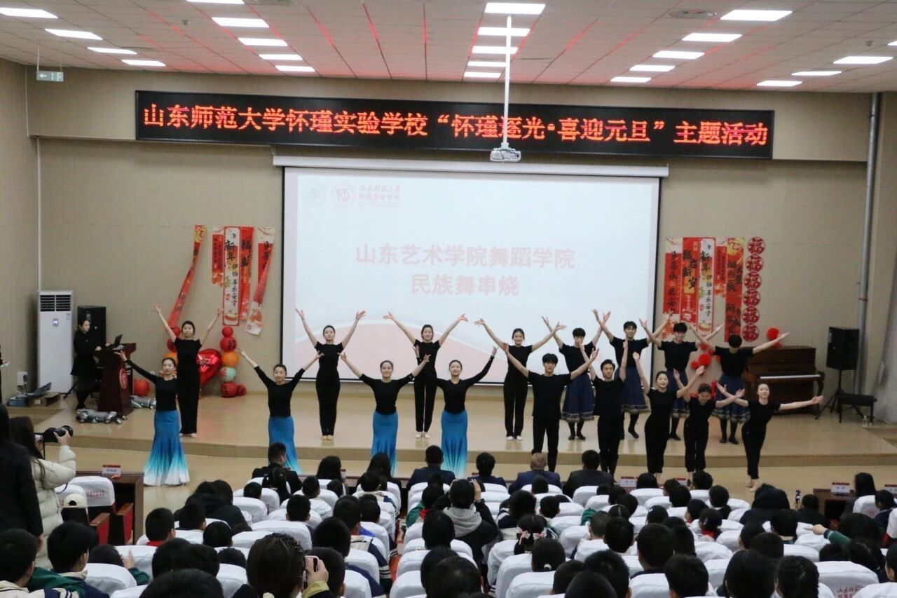 辞旧迎新岁,歌舞庆元旦。12 月 31 日,山东师范大学怀瑾实验学校举办以“怀瑾逐光·喜迎元旦”为主题的2026年元旦晚会,舞蹈学院“走进舞蹈”青年志愿者服务团受邀登台献艺,以专业的舞蹈表演为晚会添彩,与怀瑾实验学校全体师生共贺佳节,携手谱写校际交流合作的美好篇章。