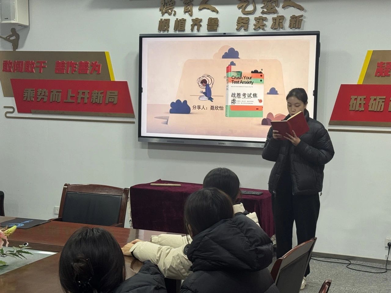 本次活动由刘骁萱主持。活动开始,刘骁萱同学提出考前容易出现的问题以及读书的作用,引发大家的积极讨论。