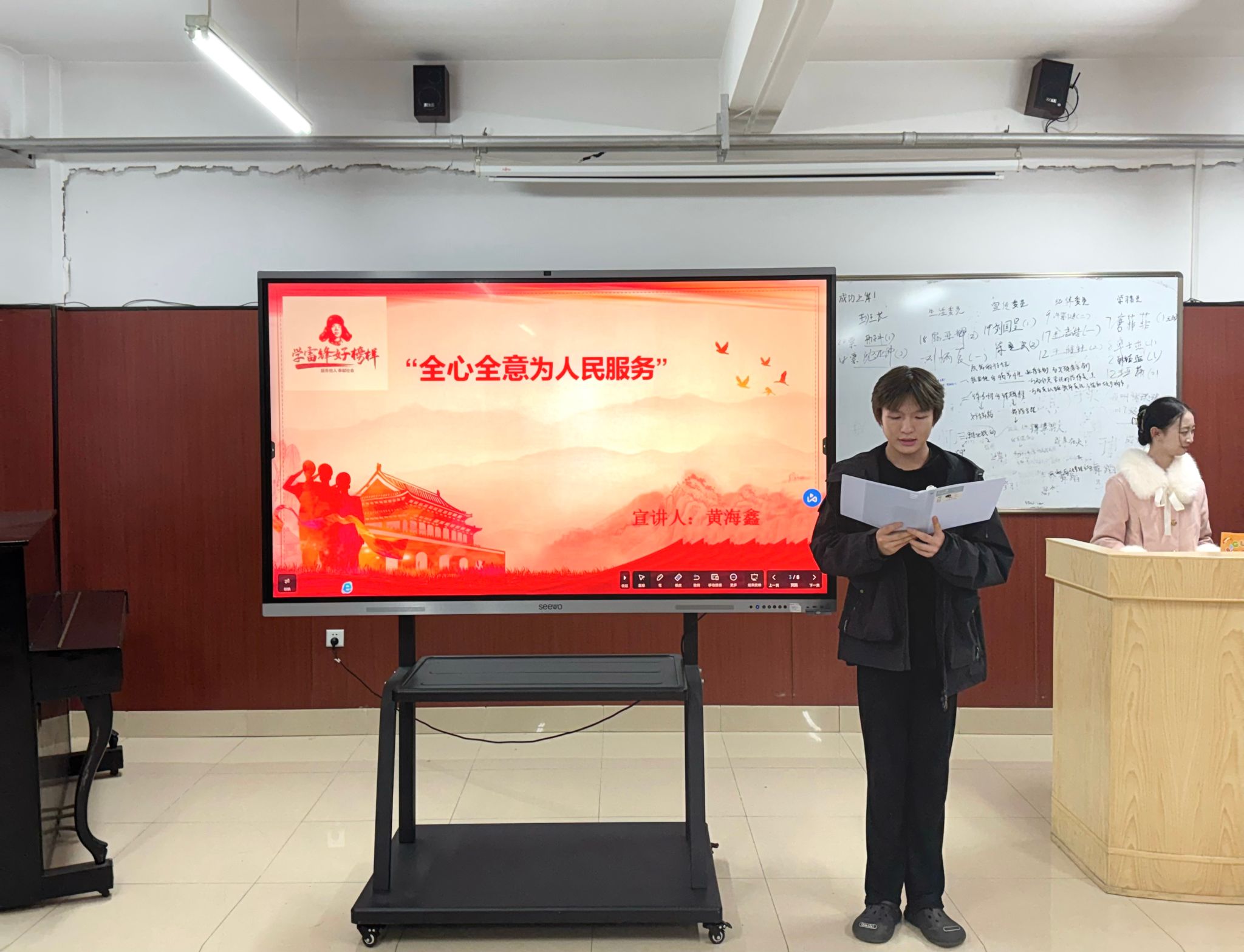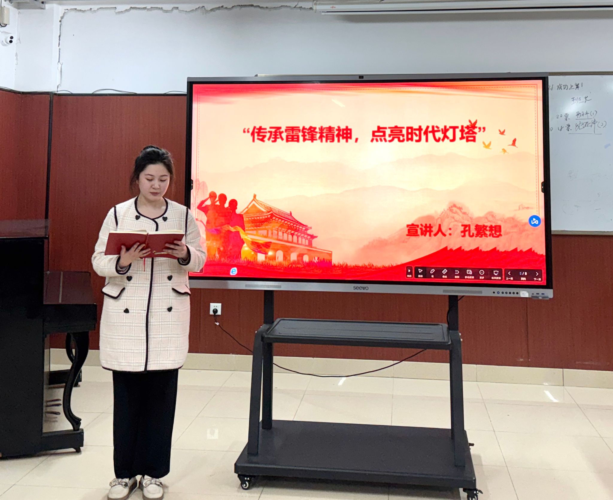 孔繁想同学为大家分享的宣讲主题是“传承雷锋精神,点亮时代灯塔”。她朗诵了雷锋同志日记本中的一段话.:“如果你是一滴水,你是否滋润了一寸土地?如果你是一线阳光,你是否照亮了一分黑暗?”这段话质朴而又充满力量,深深触动了她的内心。