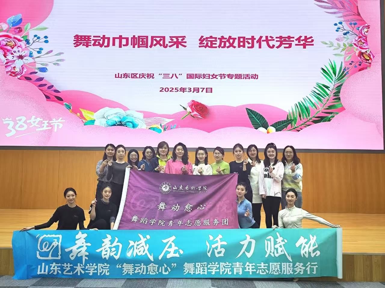 2025年3月6日至7日,山东艺术学院舞蹈学院“舞动愈心”青年志愿服务团,走进浪潮集团与山东省土地发展集团,为数十名员工开展“舞动减压”专项疗愈课程,首开艺术疗愈服务职场健康新模式。舞蹈学院党总支书记张琦,教授李丽娜,团总支书记、学工办主任鲁芳及“舞动愈心”青年志愿服务团的志愿者们参加。