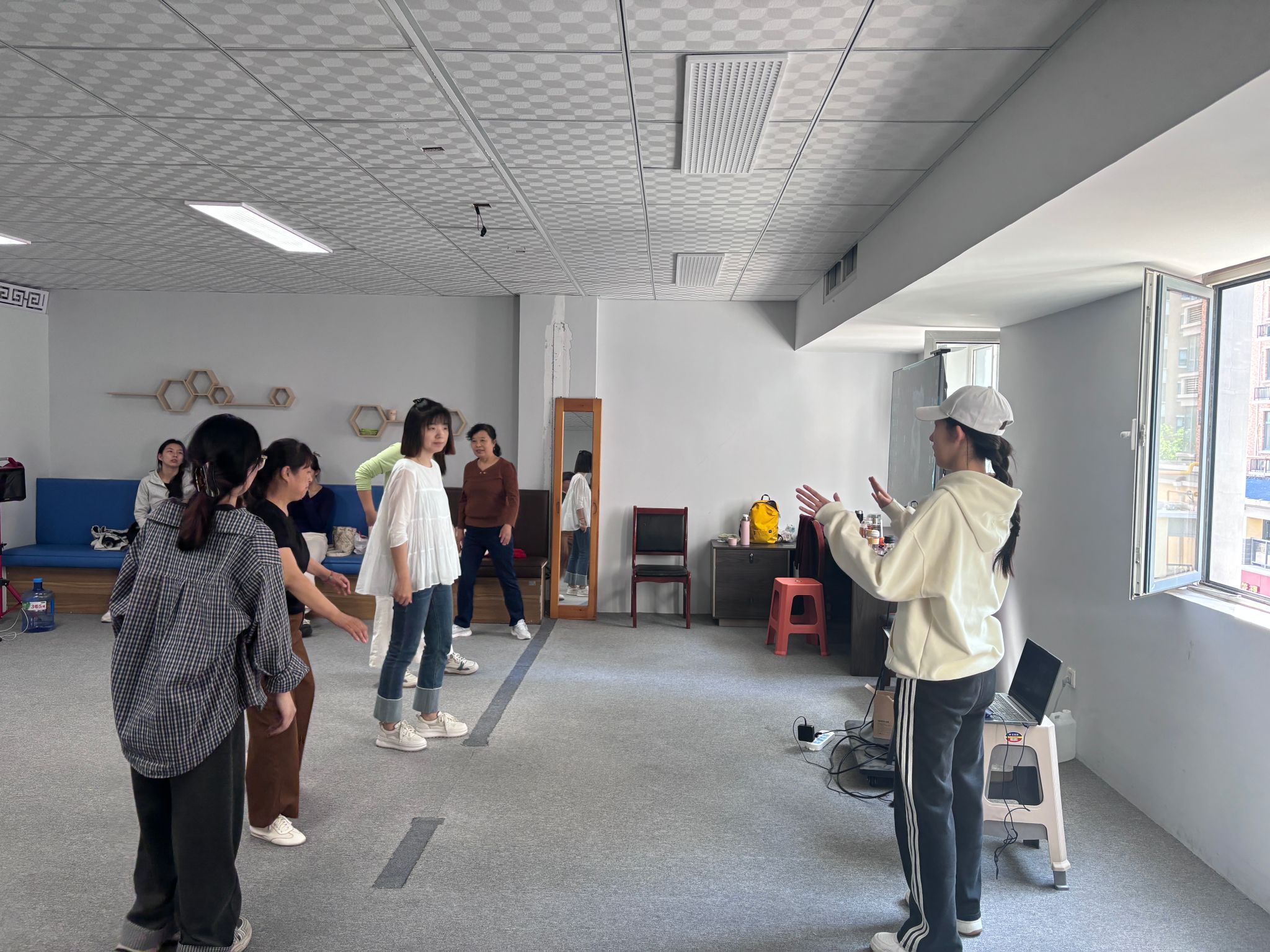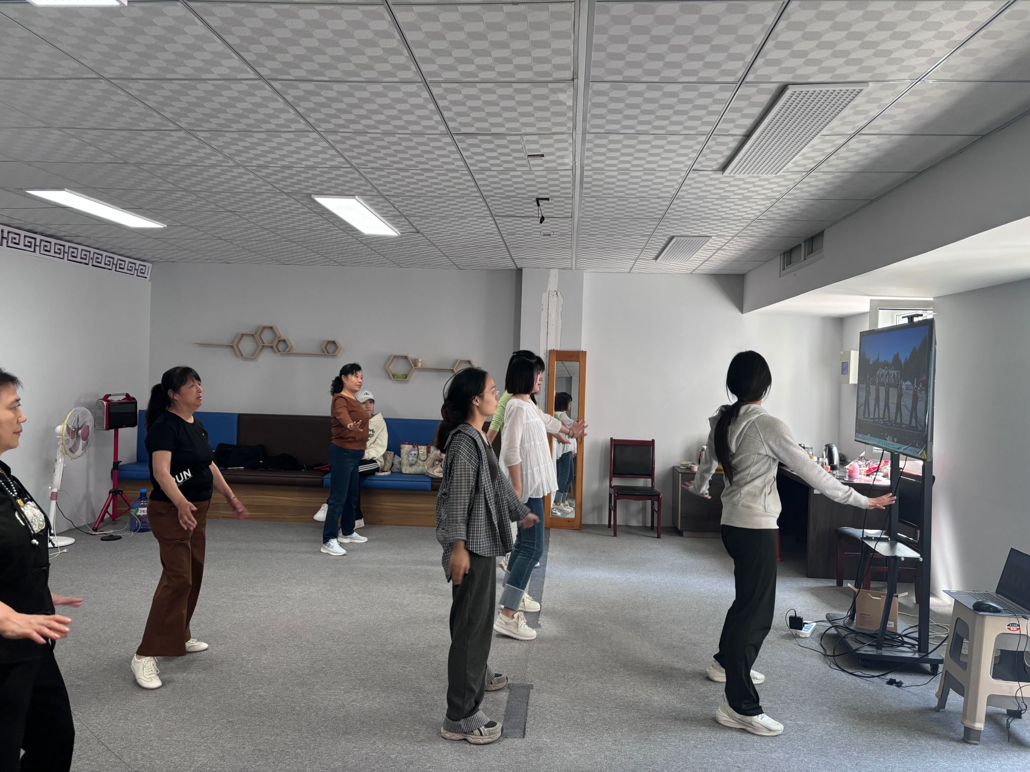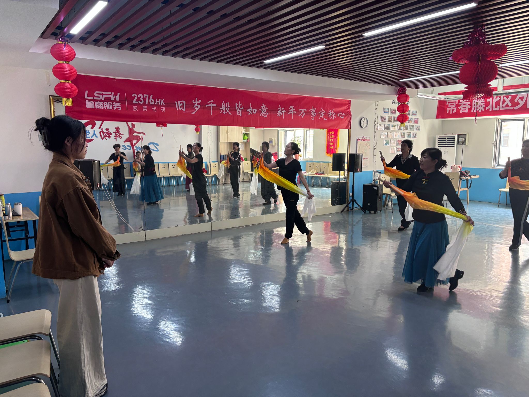 课堂上,志愿者们以专业且耐心的教学方式,将复杂的舞蹈动作拆解为简单易学的基础舞步。从抬脚的角度、摆臂的幅度,到节奏的把控,她们手把手示范、面对面指导,逐步引导居民掌握舞蹈技巧。这一过程不仅让社区居民系统掌握了舞蹈技艺,更让大家在翩跹舞姿中充分感受艺术魅力。