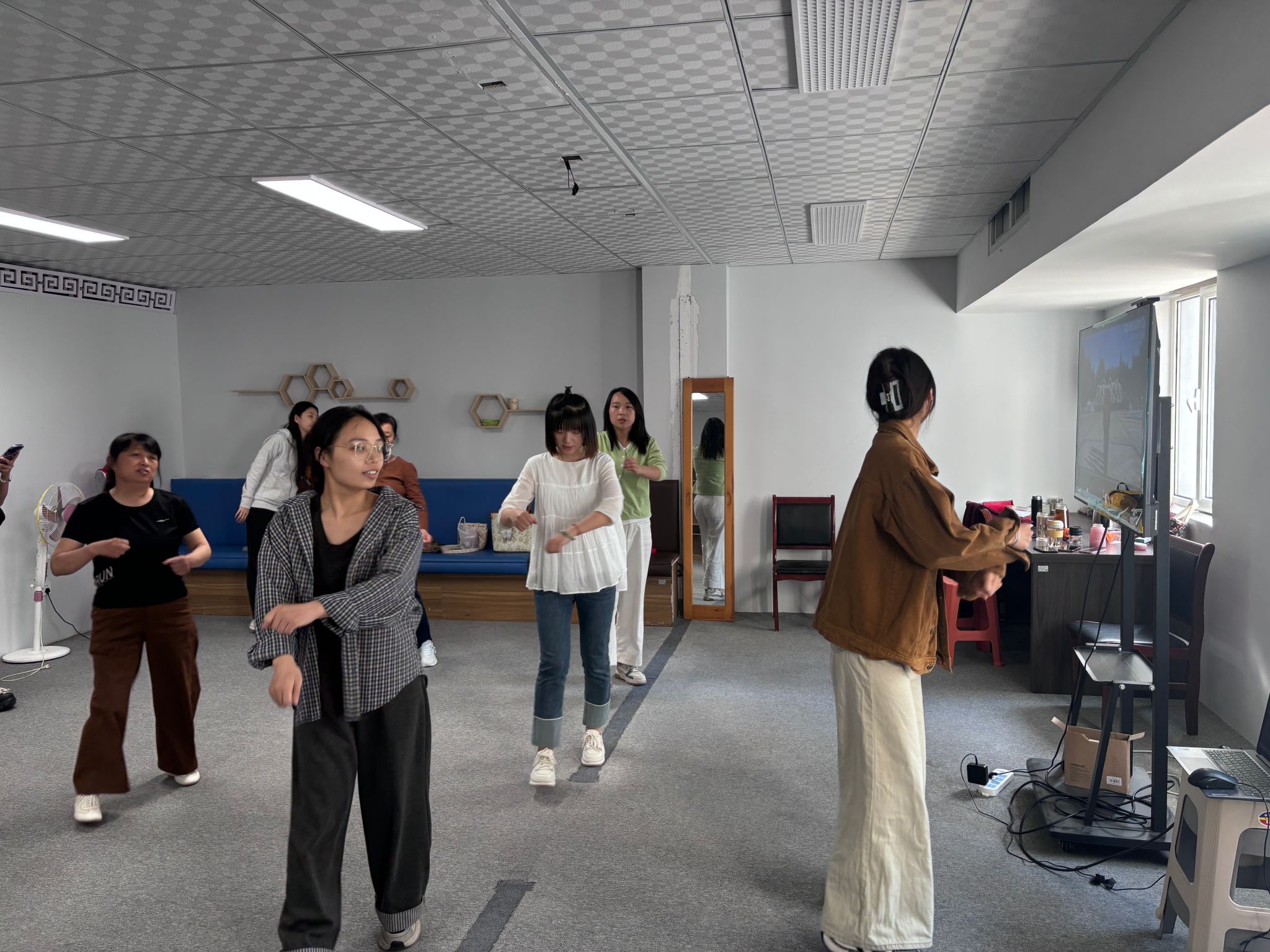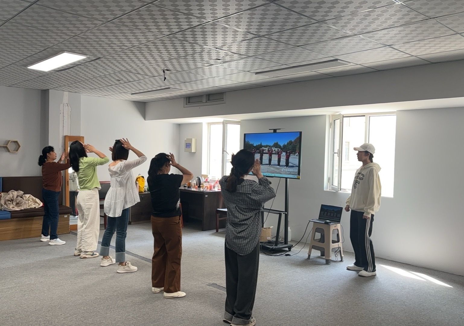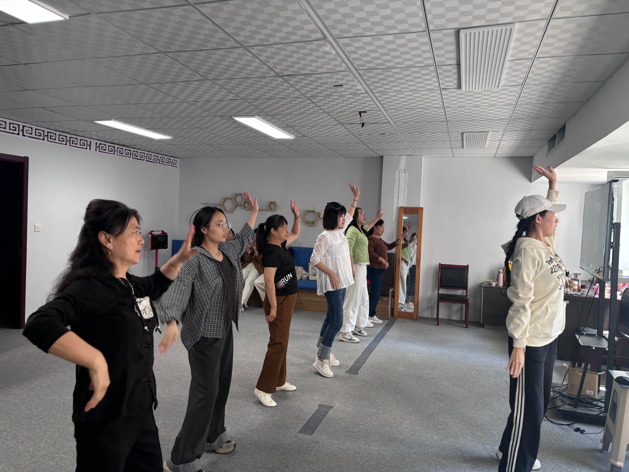 课堂上,志愿者们以专业且耐心的教学方式,将复杂的舞蹈动作拆解为简单易学的基础舞步。从抬脚的角度、摆臂的幅度,到节奏的把控,她们手把手示范、面对面指导,逐步引导居民掌握舞蹈技巧。这一过程不仅让社区居民系统掌握了舞蹈技艺,更让大家在翩跹舞姿中充分感受艺术魅力。