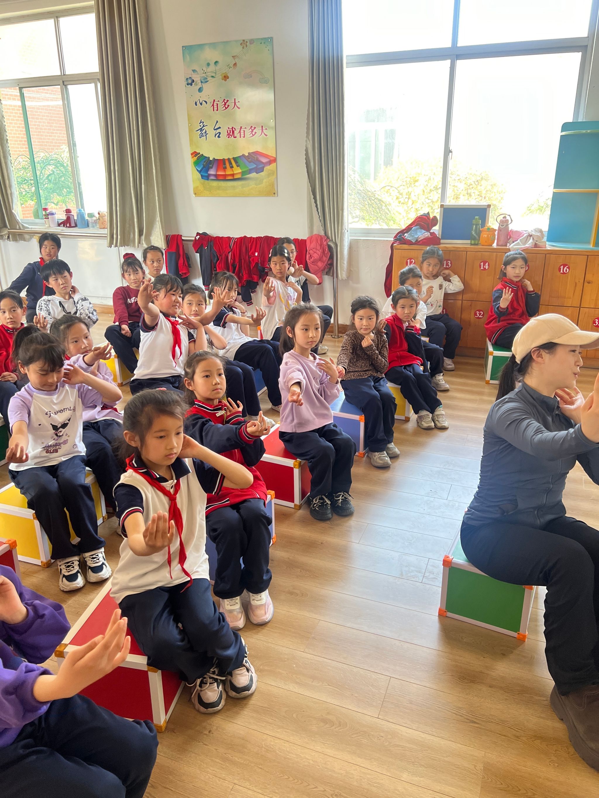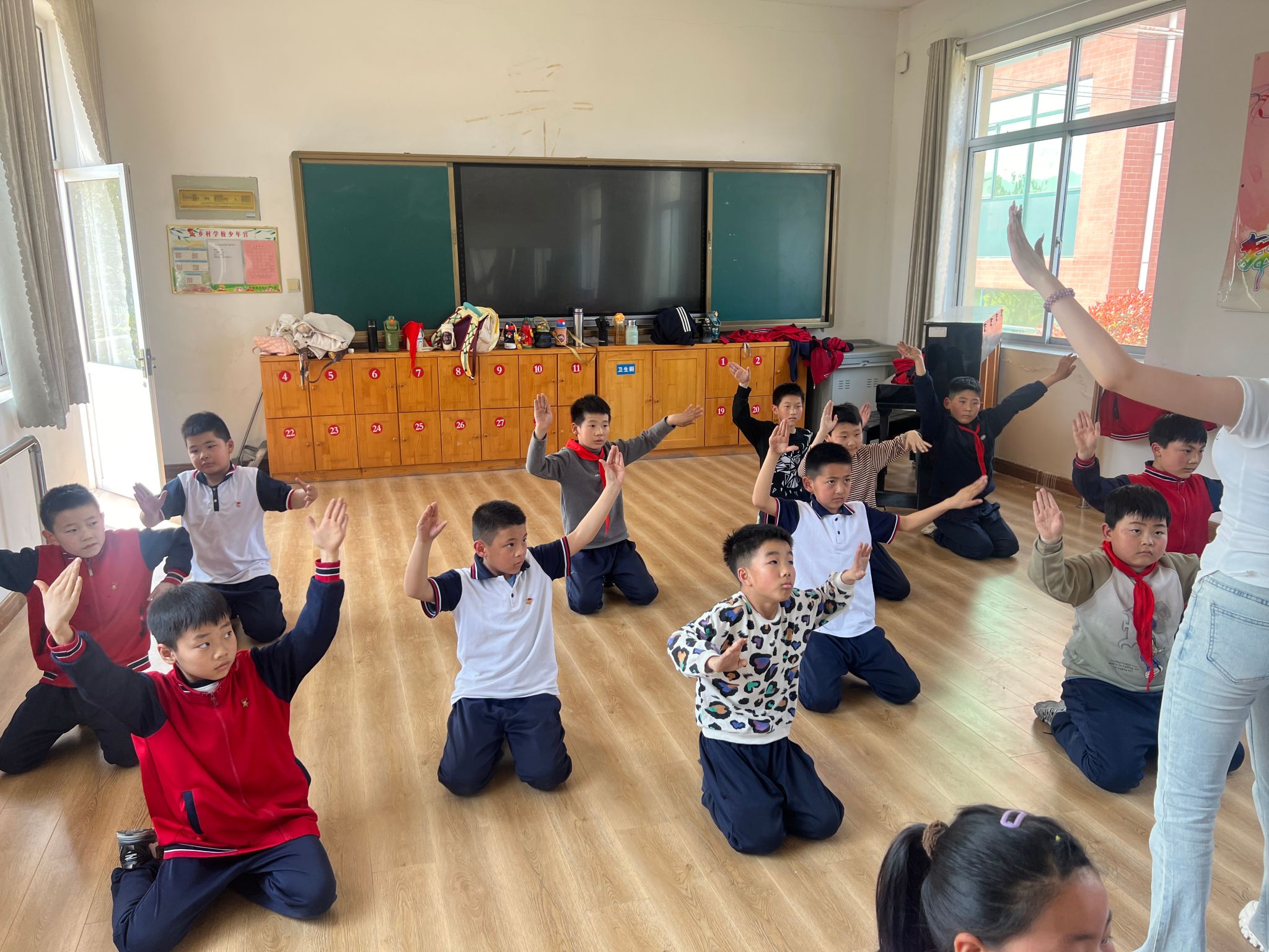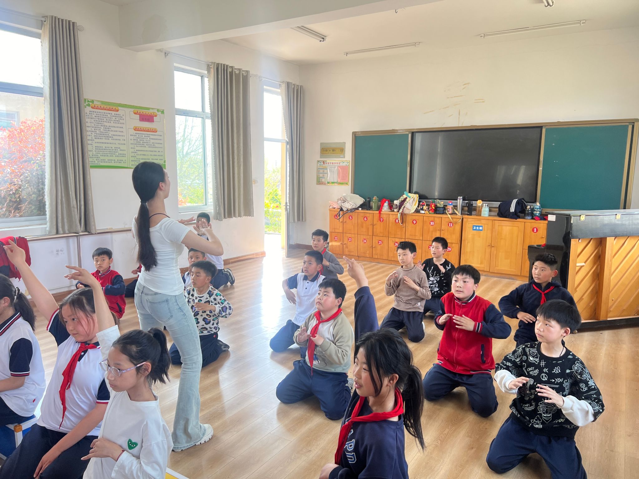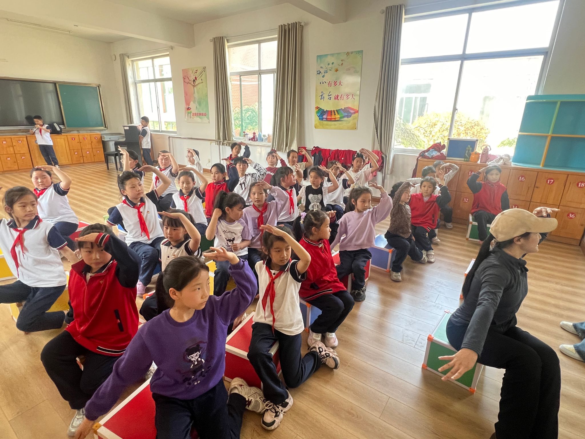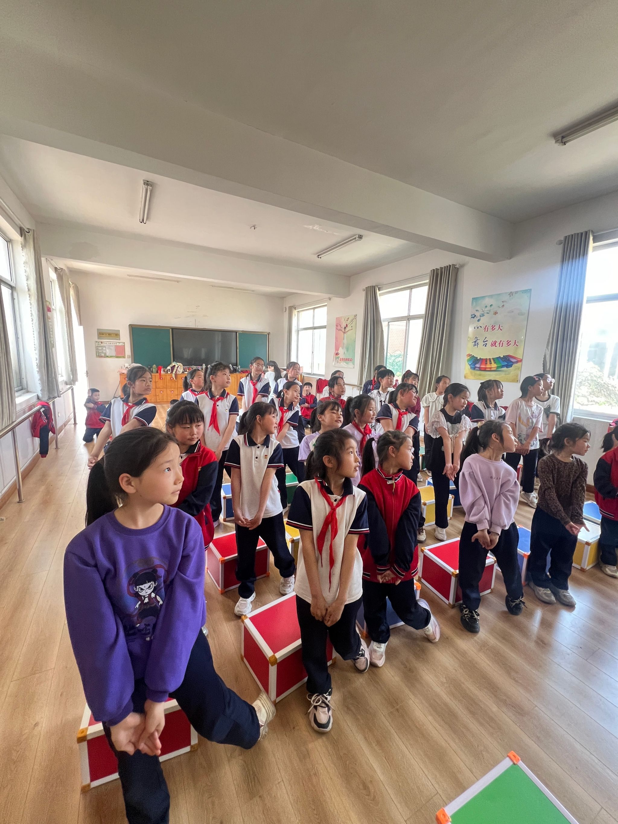 4月10日,山东艺术学院舞蹈学院“走进舞蹈”青年志愿服务团走进青杨小学,为一至四年级的学生开展了一场舞蹈教学活动。此次是志愿者们第二次为青杨小学的小朋友们进行六一儿童节舞蹈排演。本次教学的主要内容是继续推进《渔光曲》及《蒙古·樂》两个剧目的排演工作。